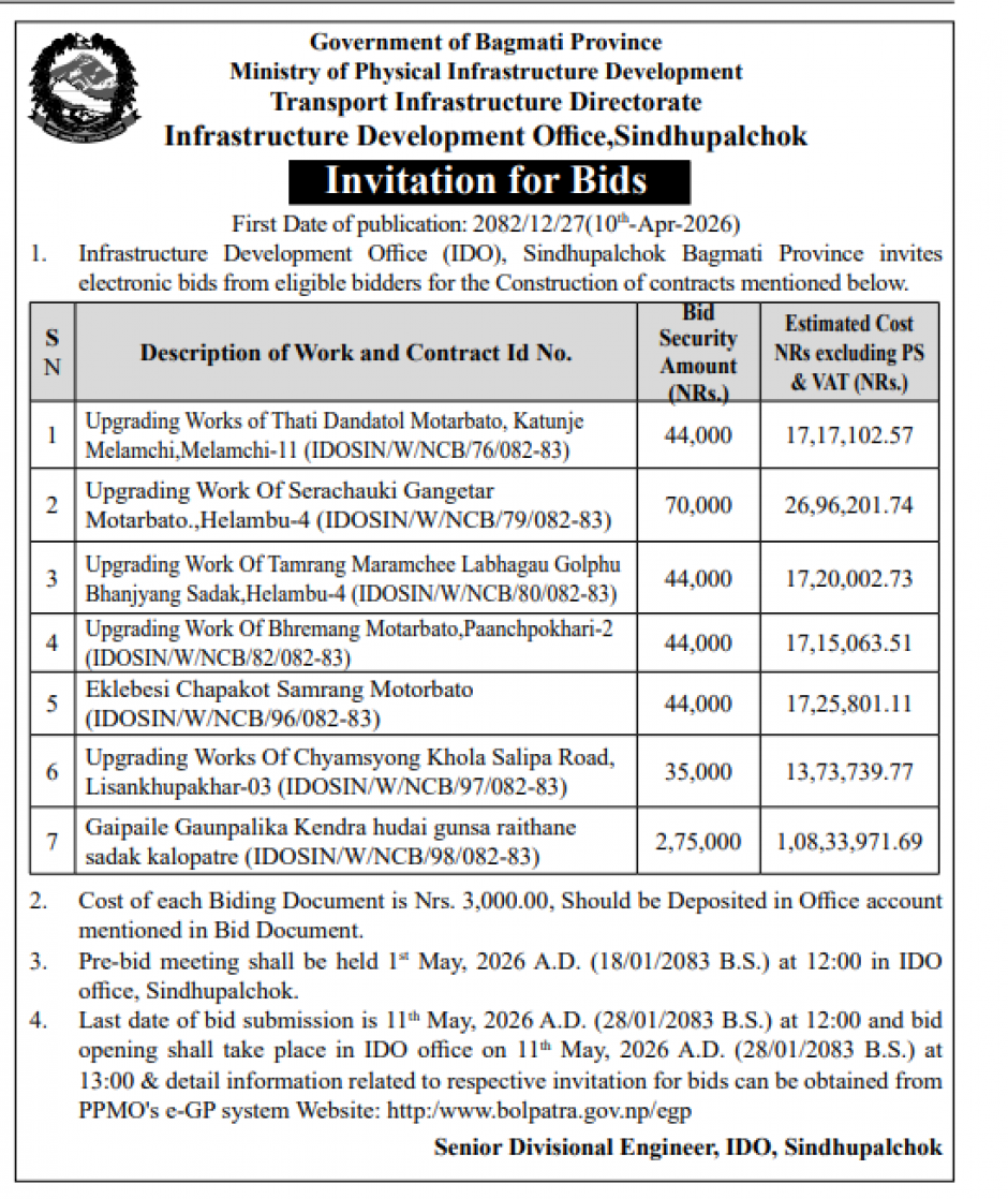 आ.व. २०८२-८३ जिल्ला दररेट सिन्धुपाल्चोक